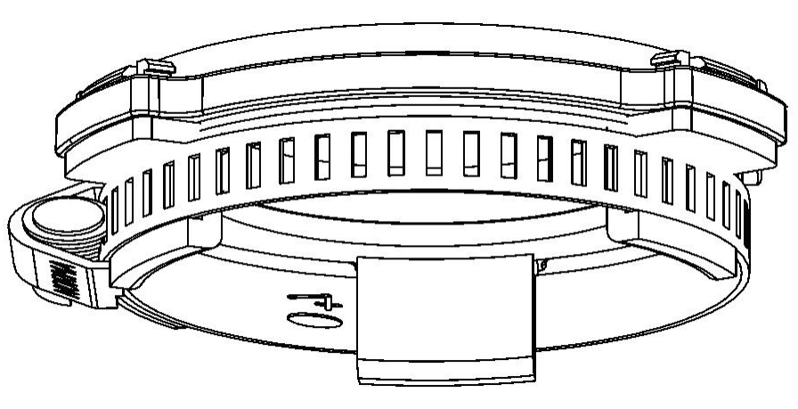 2.将“限位卡扣”与“底座”合并后,拿出“卡箍”,再次合并。